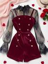 GlowEve 春夏新款黑色长袖蕾丝边优雅修身设计金色纽扣装饰女士连体裤
