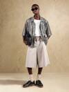 DAZY 男式棕色皮革拼布领加厚保暖夹克,冬季