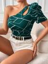 女士夏季文艺风宽松单肩纽扣吊带连体裤,军绿色,长款,适合日常休闲、户外、度假穿着