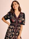 CAJUNI 女士休闲度假花卉印花短袖迷你连衣裙 - 约会装 - 外出装 - 音乐节