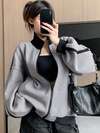 Bohemela 秋冬季波西米亚风纯色针织连帽长袖宽松短款女式卫衣
