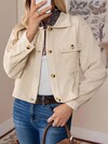 LanaWest 前扣贴袋短款夹克,女士春/秋休闲纽扣、口袋落肩领常规版型杏色纯色女士夹克,休闲日常穿着
