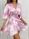 SHEIN Privé 紮染蝙蝠袖圍裹側打結洋裝
