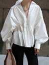 女士纯色前扣口袋休闲衬衫,舒适新款长袖,简约宽松复古休闲外套,适合秋冬季节穿着,白色春季款