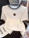 SHEIN 刺绣爱心女士圆领修身短袖T恤