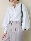 DAZY 女士纯色长袖休闲商务衬衫,秋季,女士休闲纽扣长袖领常规版型白色主教袖衬衫,女士衬衫,春秋季,职业/商务着装/工作服,长袖上衣