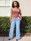 Soleia 全新度假蓝白格子泡泡袖荷叶边系带抹胸上衣