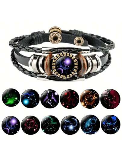 suteyi 12 星座串珠 Pu 皮革和吊飾手鍊,12 種款式可供選擇 - 黑色 - 查看 1