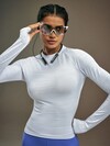 Powerista 女式秋季简约纯色插肩袖拇指孔修身运动T恤