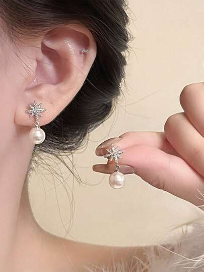 topshiny 一对优雅的珍珠水钻吊坠耳环,适合日常佩戴和派对场合。 - 彩色 - 查看 1