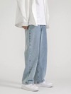 Manfinity Homme 男士修身版型牛仔褲長款洗濯深色牛仔褲,帶口袋純藍色工作基礎款