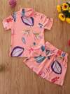 小女童植物圖案高領T恤帶半身裙