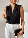 Ellegaria. 素色交疊領泡泡袖緞面襯衫