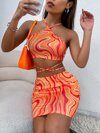 SHEIN Unity 大理石圖案十字交叉後背繫帶繞頸短上衣和包臀半身裙