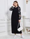 Mulvari 对比色花朵插肩袖端庄长袖连衣裙端庄连衣裙