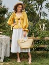 SHEIN VCAY 結飾燈籠袖蕾絲上衣和半身裙套裝