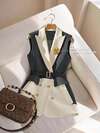 HOMEYEE 拼布撞色翻领长袖上衣,复古休闲优雅商务正式办公室衬衫夹克